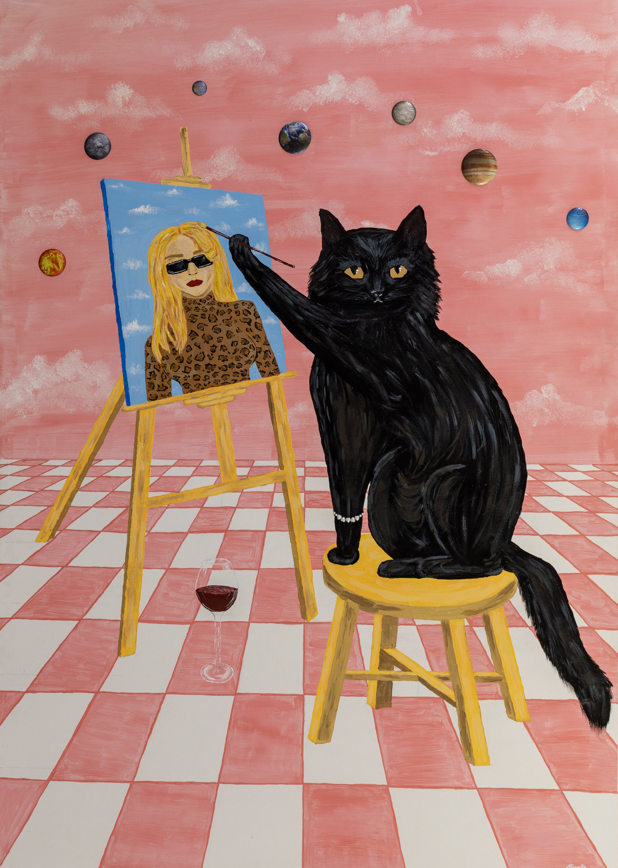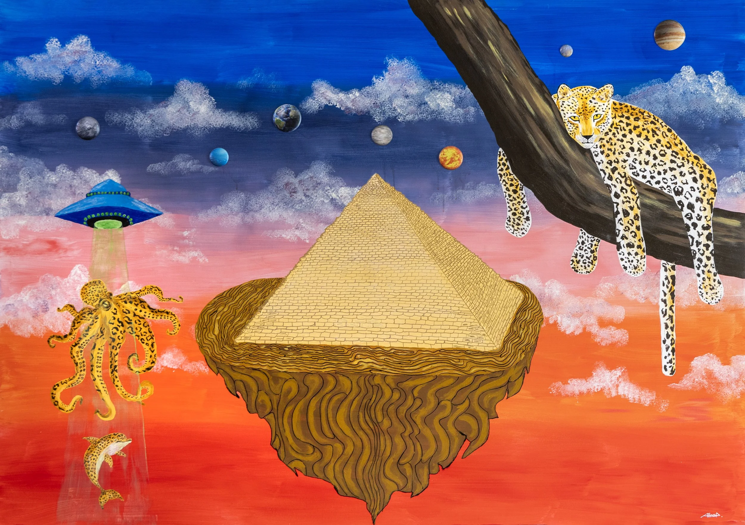 Operating at the liminal intersection of Surrealism and Pop Aesthetics, the collection presents canvases that dismantle the linearity of time and place.
